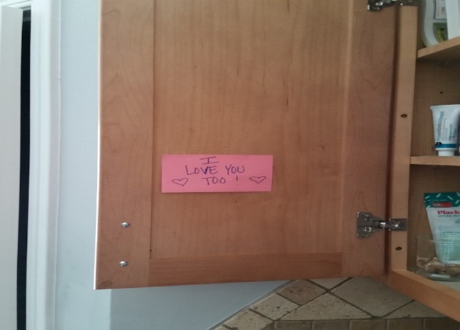 I left this note on one of them, kind of my special code to him.